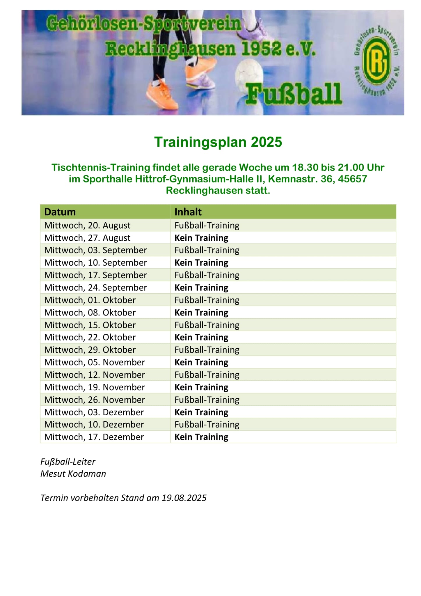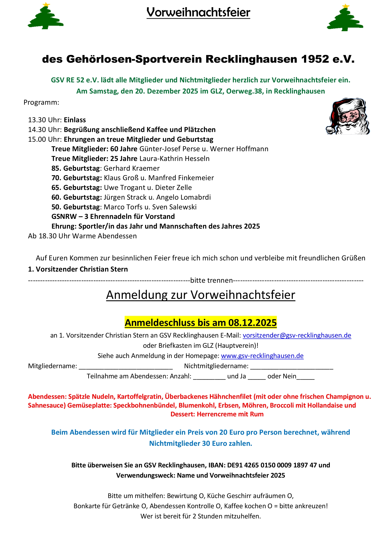 Vorweihnachtsfeier– 20.12.2025 –Meldeschluss: 08.12.2025