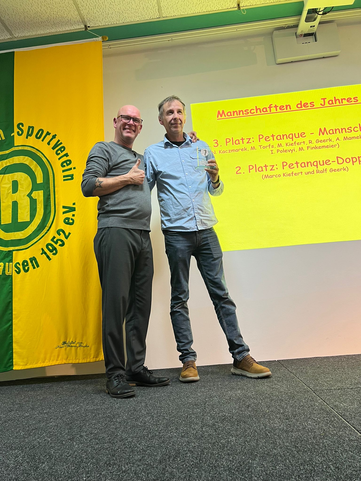 Zudem wurden rund fünf Geburtstagskinder des Jahres 2025 auf die Bühne gebeten und gefeiert: Klaus Groß und Manfred Finkmeier (70. Geburtstag), Uwe Trogant (65. Geburtstag), Jürgen Strack (60. Geburtstag) und Marco Torfs (50. Geburtstag).