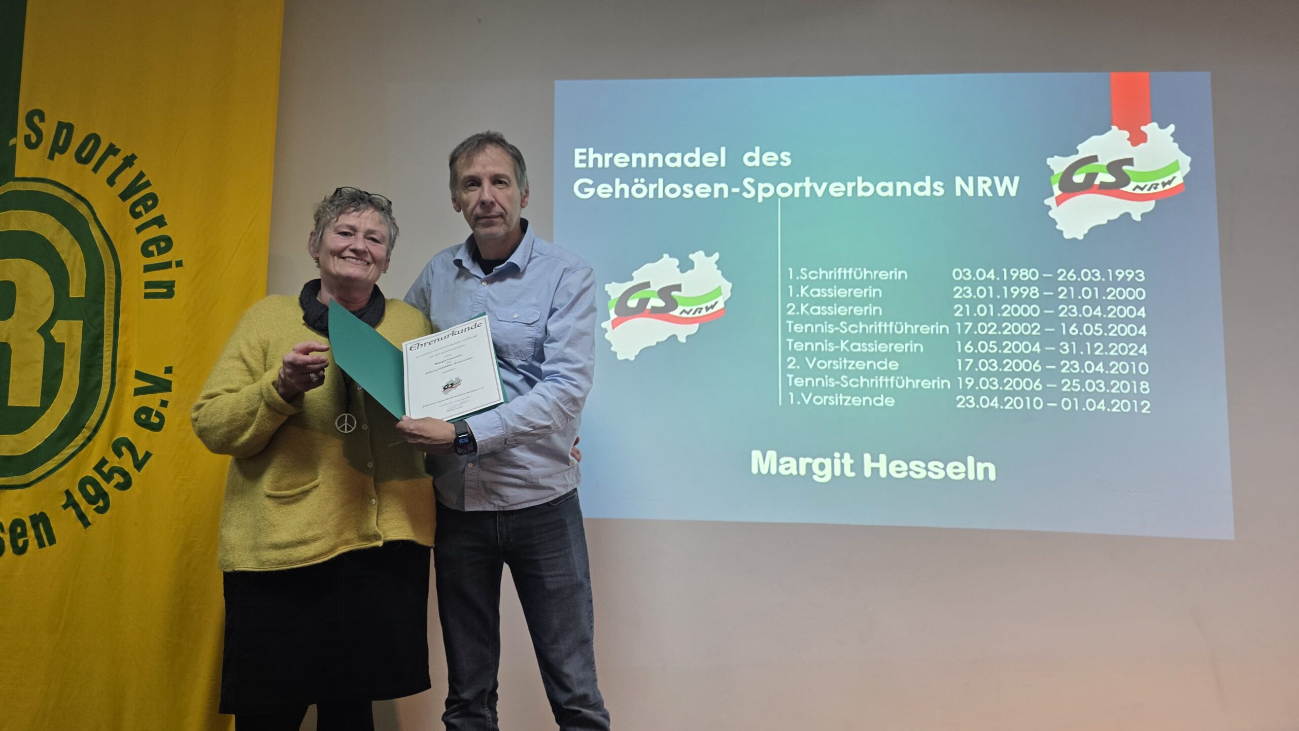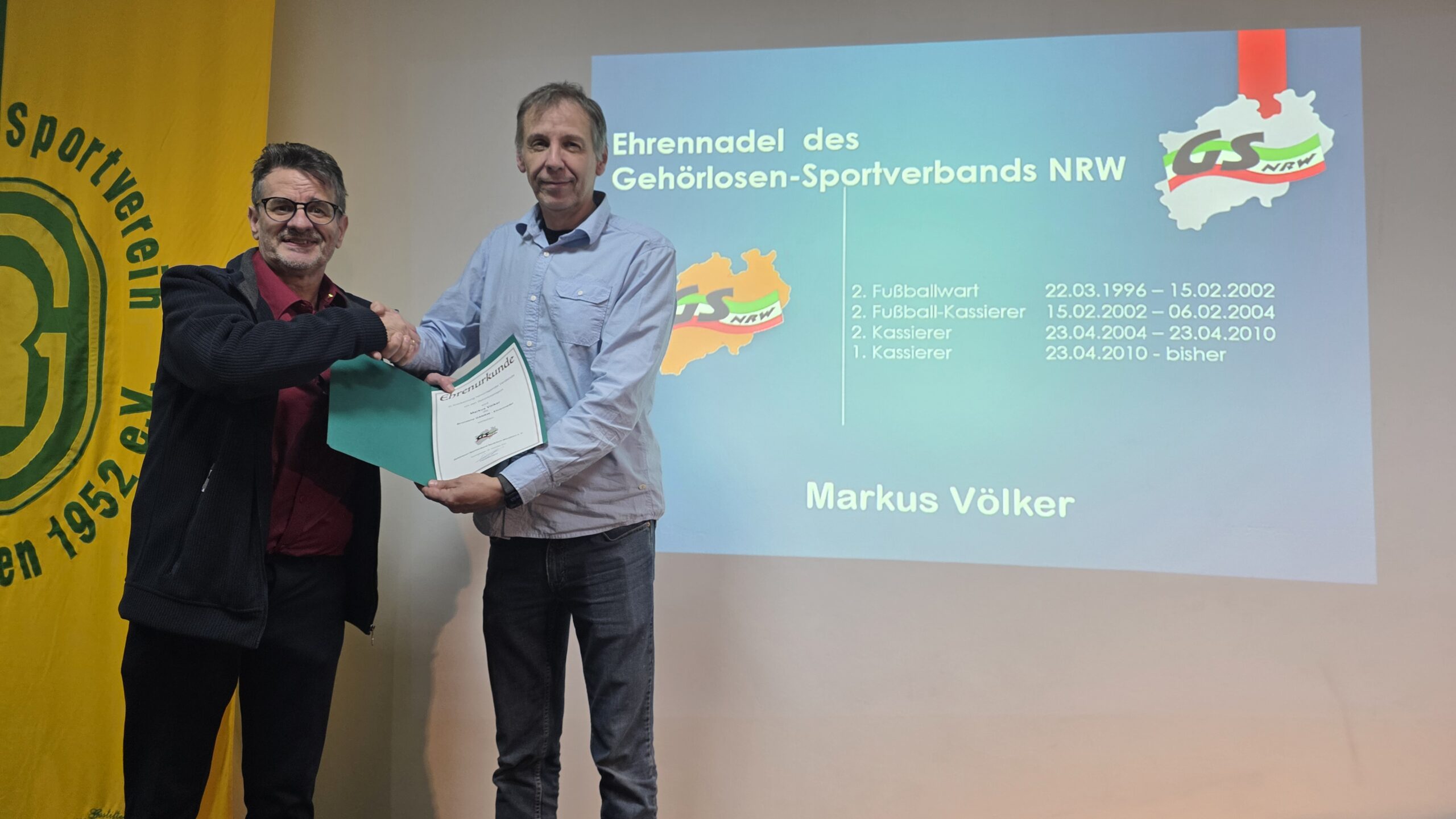 • Markus Völker erhielt die bronzene GSNRW-Ehrennadel und Urkunde für seine ununterbrochene Tätigkeit seit 1996 (24 Jahre).