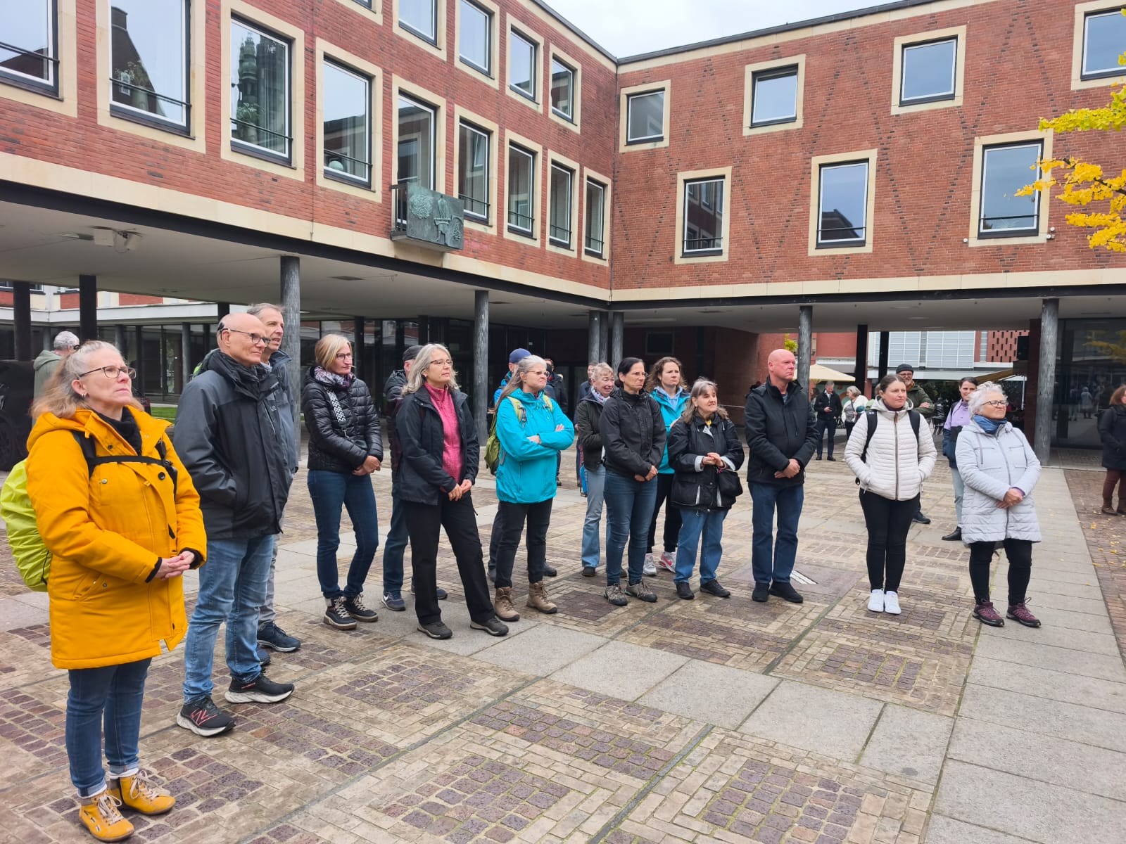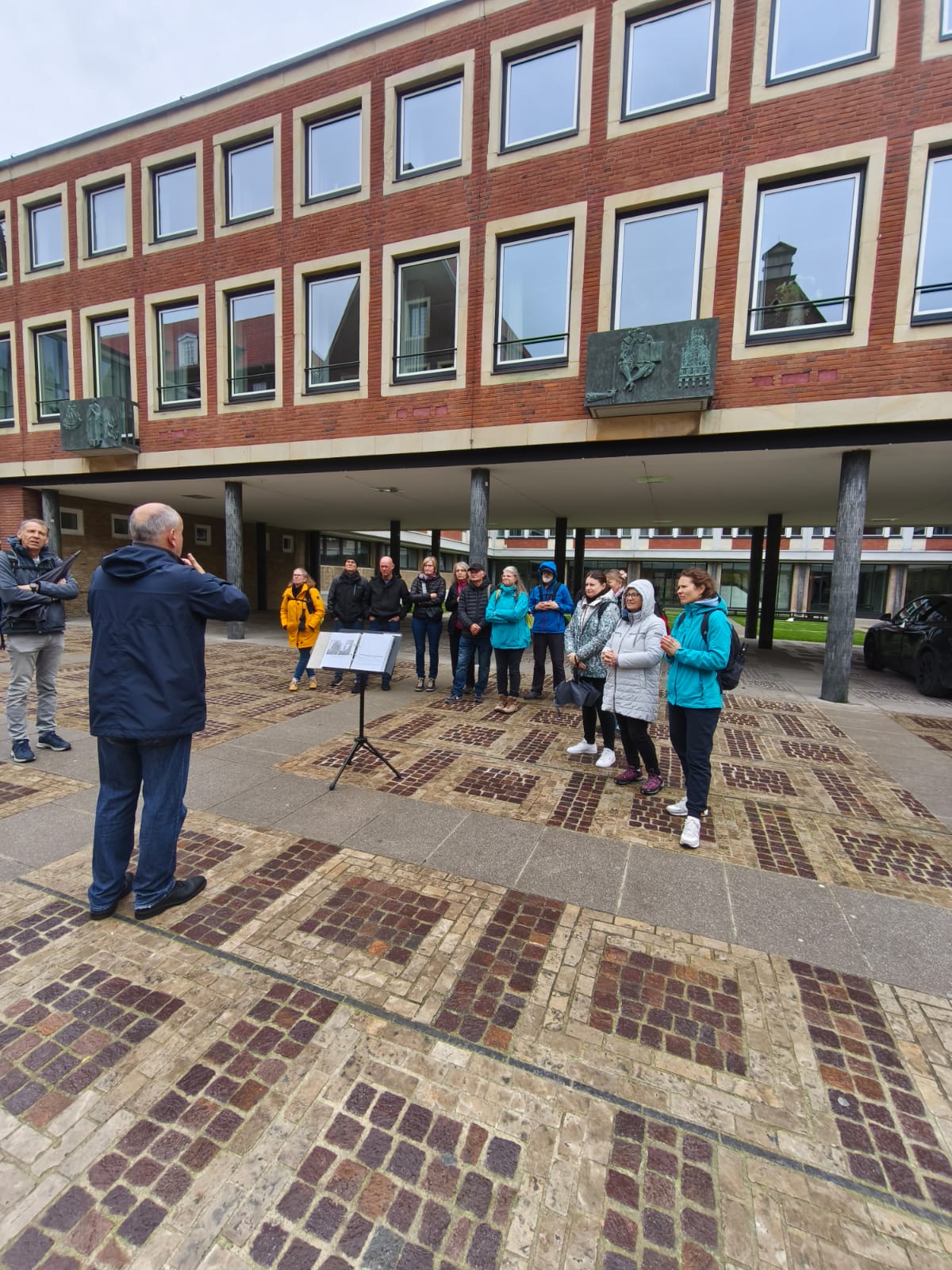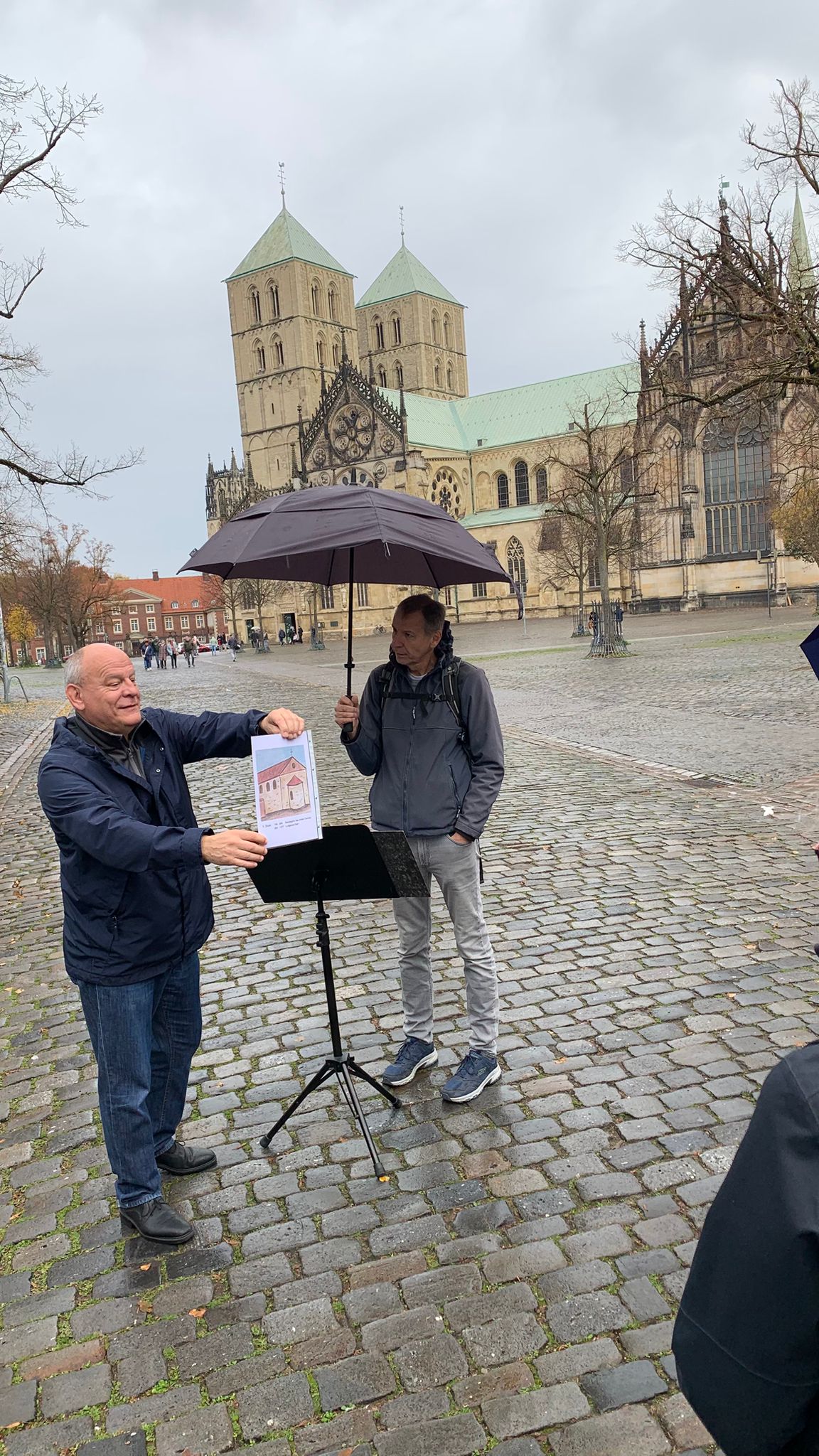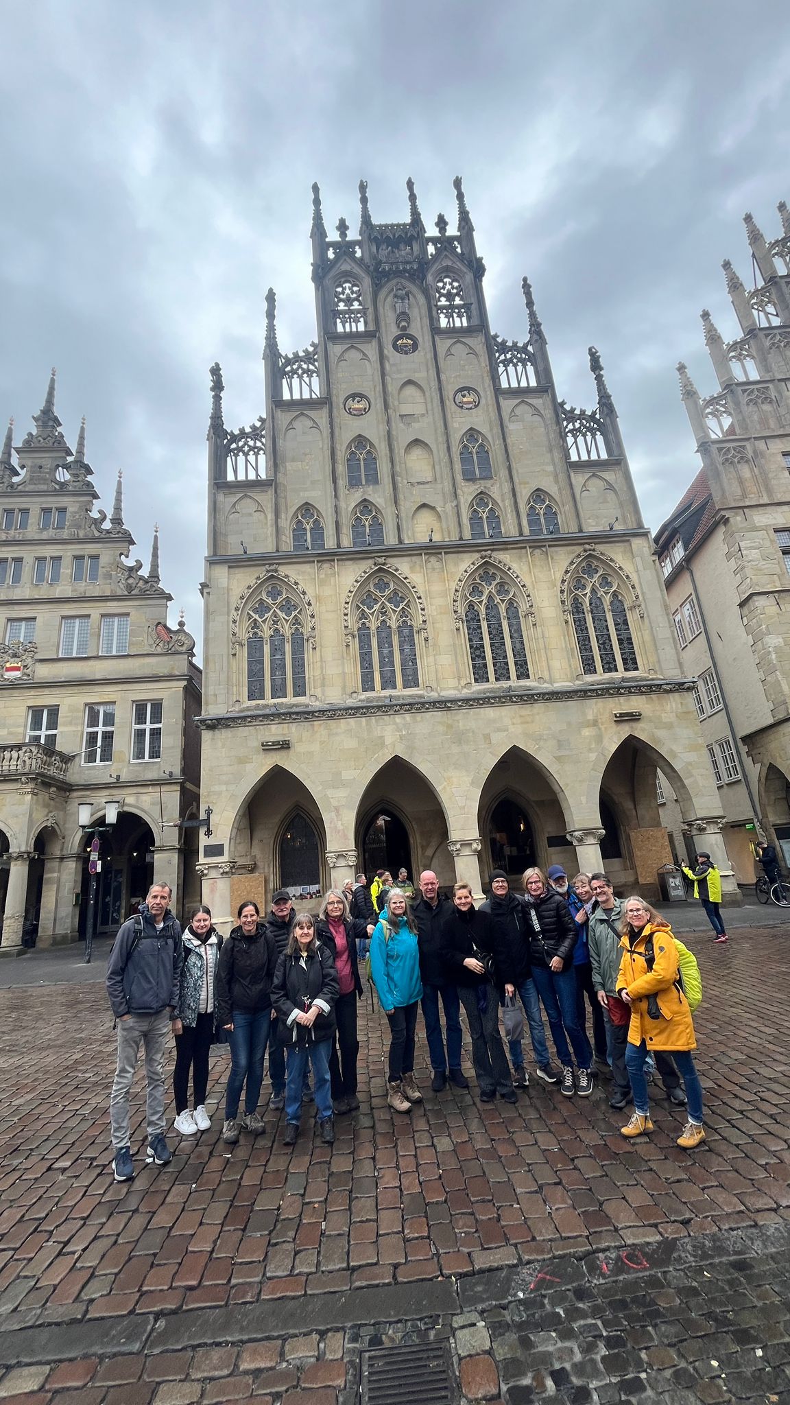 In Münster erwartete uns der Stadtführer Rudolf Turmbrink, der uns auf einer zweistündigen Tour durch die Stadt begleitete. Er vermittelte uns die Geschichte Münsters mit Hilfe von Gebärdensprache. Zum Abschluss der Führung bedankten wir uns mit Applaus bei ihm.