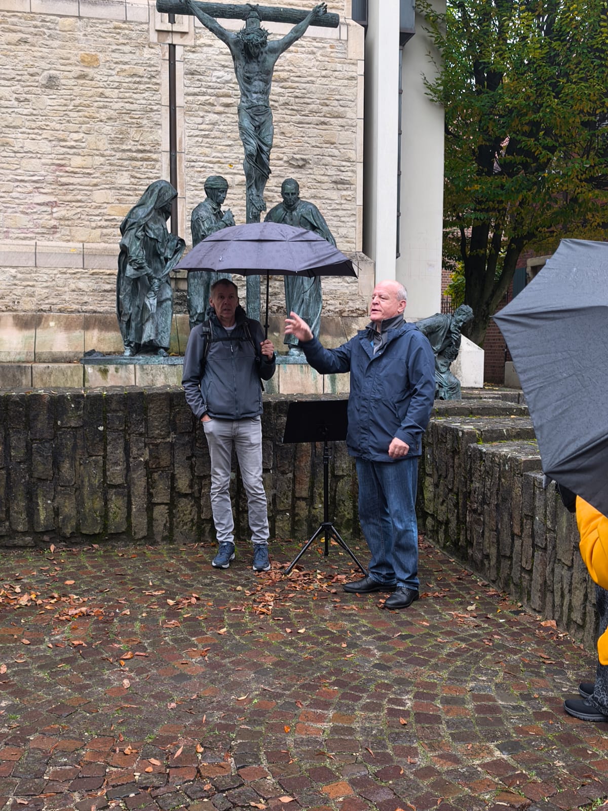 Am Samstag, den 1.11.2025 (Allerheiligen), trafen wir uns um etwa 9:20 Uhr am Bahnhof in Recklinghausen und fuhren gemeinsam zum Bahnhof Münster. Trotz des schlechten Wetters kamen insgesamt 15 Teilnehmer.